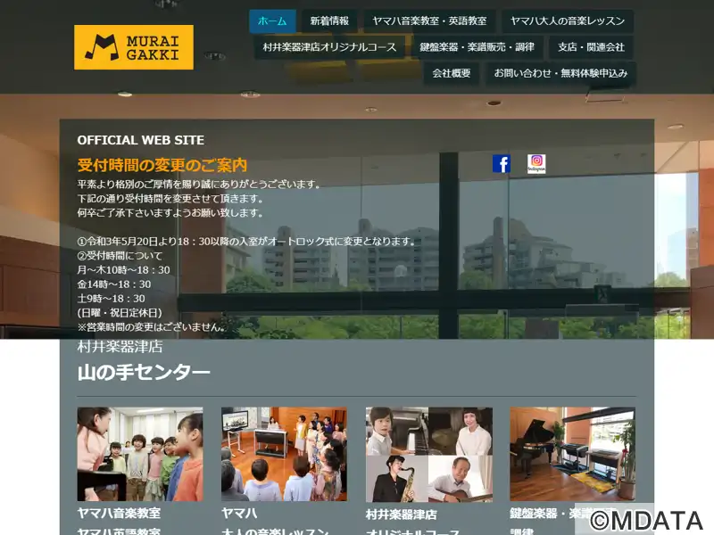 三重県津市にある村井楽器のレッスンセンター。ヤマハユニスタイル導入店として、子ども向けのヤマハ音楽教室と英語教室、大人向けレッスン、青春ポップスのほか、村井楽器オリジナルレッスンを開講。初心者から経験者まで、あらゆる年齢を対象に、ピアノ、バイオリン、エレクトーン、サクソフォン、フルートなど多彩なコースを提供する。ヤマハ特約店として楽器や楽譜の販売、ピアノ調律にも対応し、音楽ライフをサポートしている。