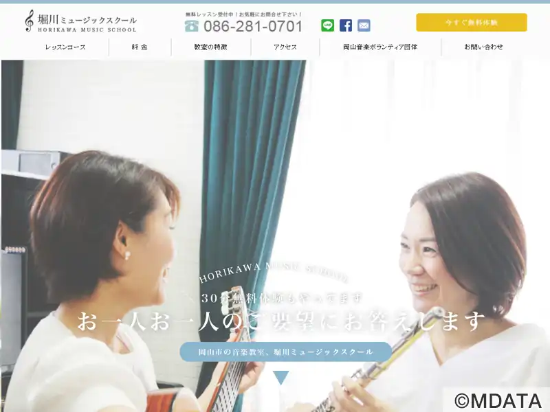 岡山市にある音楽教室で、藤田と妹尾でレッスンを行うマンツーマンレッスンや独自開発のトレーニングソフトを用いたパソコンレッスンを導入し、各自のペースで読譜力や音感を身につけることができる。年間を通じて音楽発表会やボランティア活動を通じた演奏機会も提供し、音楽を通じた成長の場となっている。ボーカル、ピアノ、ギターなどのLM楽器、管楽器、和楽器など複数の楽器を一定の月謝で学ぶことができるシステムも特徴。