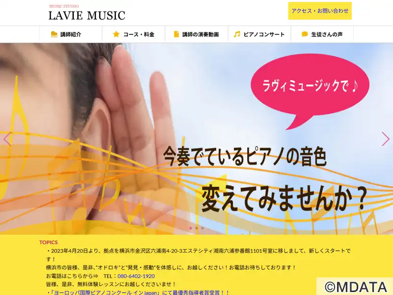 長崎県佐世保市にある、小川郁子氏(国立音楽大学教育音楽科卒・第11回ヨーロッパ国際ピアノコンクールin Japan 最優秀指導者賞)が指導を行う、ピアノ教室。世界的トップレベルの教授陣から習得した指導でレッスンを行う。四歳から高校3年生を対象に、ピアノやソルフュージュのレッスン、初級から、音楽大学受験対策の上級コースまで開講。レッスンは、じっくり学べる十分な時間をる。サロンコンサートを毎年開催。出張レッスンも可能。