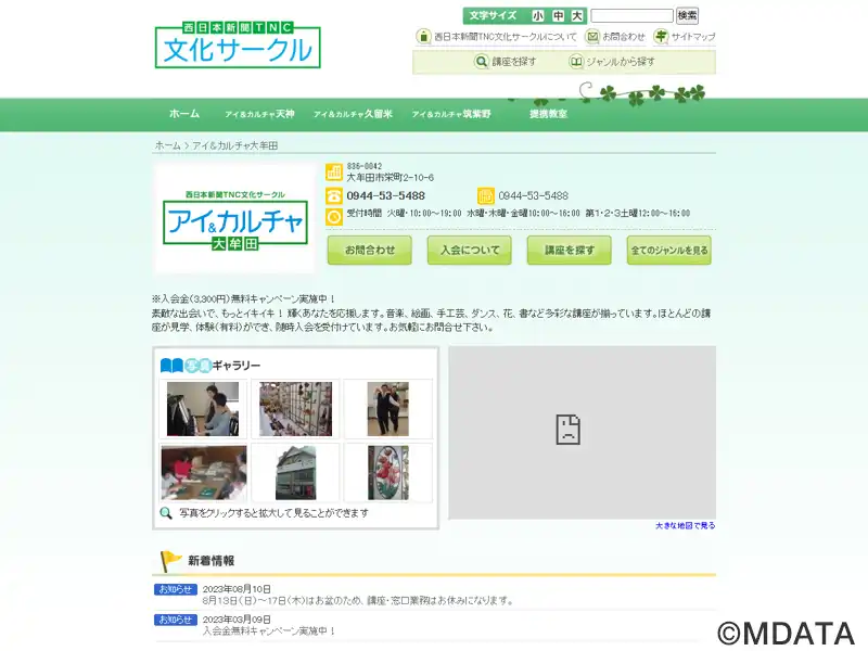 大牟田市にある西日本新聞TNC文化サークルが運営するカルチャーセンター。「耕す」(Cultivate)、「創る」(Create)、「貢献」(Contribute)の3つの「C」を理念の中核に据え、やってみよう、という学ぶ意欲に応える。初心者の方、シニアの方でも安心して楽しめる幅広い講座を開講する。伝統芸能・音楽ジャンルでは、ピアノ、ウクレレ、長唄三味線、沖縄三味線、謡曲喜多流、ポップス・シャンソン、ボイストレーニングなどの講座を開講。