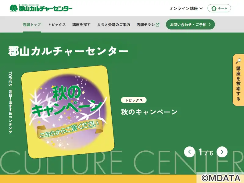 郡山市のイトーヨーカドー郡山店4Fにある、株式会社カルチャー運営のカルチャーセンター。「一流の講師とすばらしい仲間」をモットーに、子どもからシニアの方まで楽しめる幅広いコースを揃える。音楽講座はピアノ・電子オルガン、ギター、ウクレレ、ハーモニカ、オカリナ、二胡、三味線・三線、シャンソン・カンツォーネ、コーラス・愛唱歌、ポピュラー・ジャズ、ボイストレーニング、カラオケ、民謡、和楽器・篠笛・太鼓を開講。