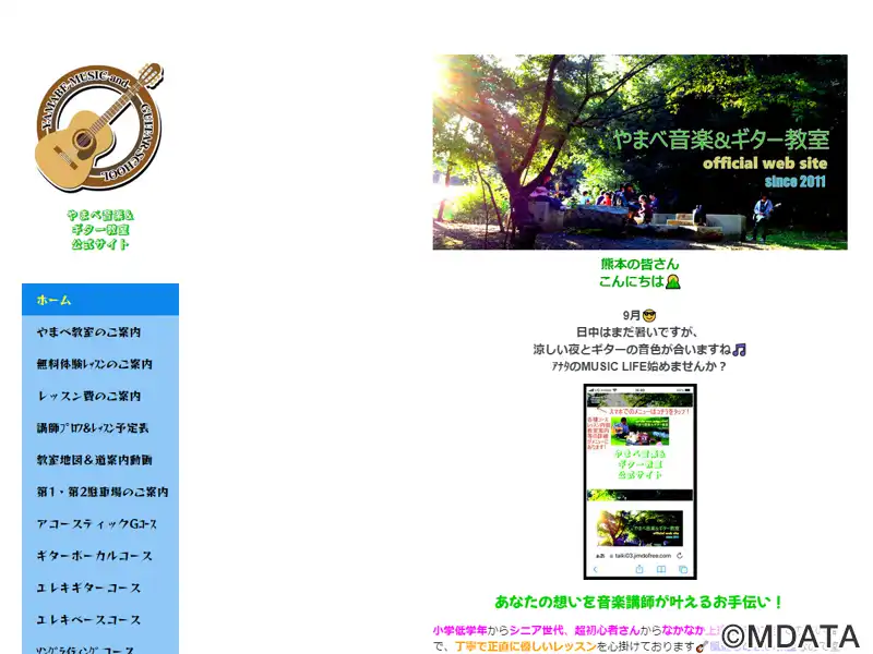 熊本市にあるギター教室。アコースティックギター・弾き語り専門の講師によるアットホームな個人レッスンで、実践的なエレキギターやベース、曲の作り方も指導している。子どもから大人まで、初心者から経験者まで、自分に合ったクラスやコースを選ぶことができ、生徒の目標に応じて上達できるように、基礎やテクニックを分かりやすく指導している。リーズナブルな料金設定で、楽器の貸出しもあり、駐車場無料を完備。