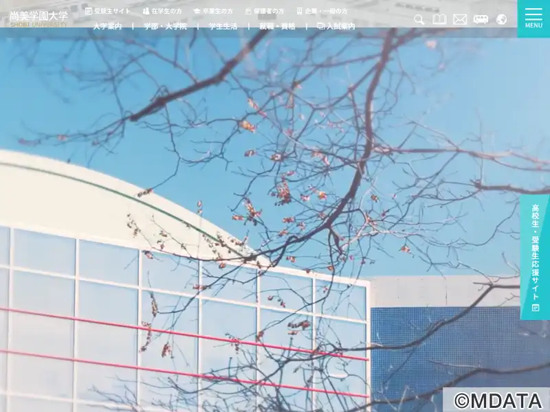 埼玉県川越市にある私立大学。「智と愛」を建学の精神として、1926年創立。芸術、スポーツ、社会科学を中心に教育を行う。主な学部は芸術情報学部、総合政策学部、スポーツマネジメント学部で、それぞれの分野で専門性と実践力を育成することに重点を置く。高度情報化や国際化に対応し、新たな学術研究を推進。キャンパス内には、「尚美パストラルホール」や、講堂・体育館の「2000年記念館」など、充実した施設を備える。