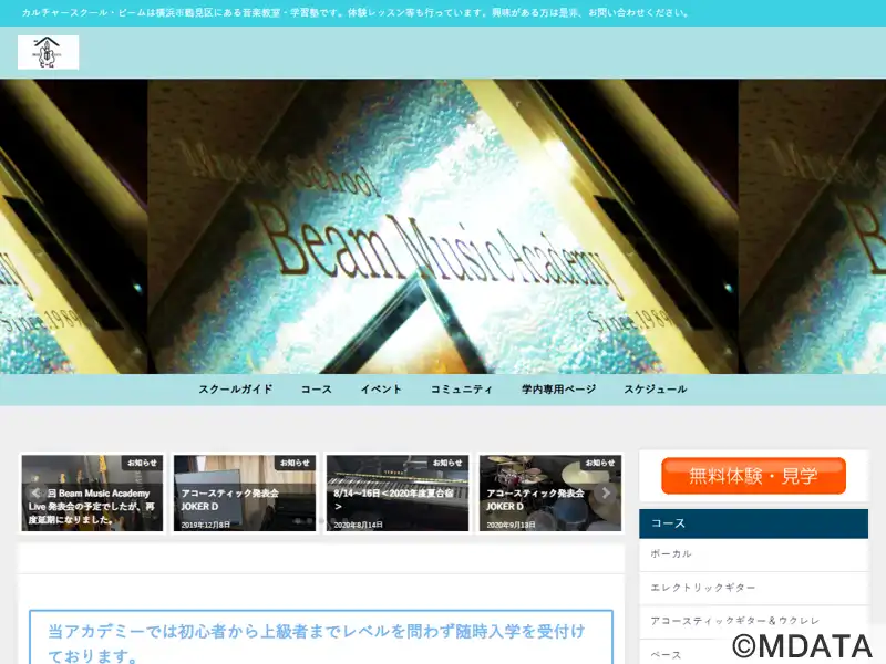 横浜市鶴見区にある多彩な音楽教育を提供するカルチャースクール。ボーカルやギター、ドラム、ピアノ、作曲理論などの専門コースを設け、初心者からプロ志向まで幅広い層に対応。レッスンはマンツーマンを基本に、グループやペア、出張形式など多様なスタイルから選択可能。バンドライブやアコースティック発表会も定期開催。学んだ成果を発揮する機会も用意されている。スタジオレンタルなど、バンド活動のサポートも行っている。