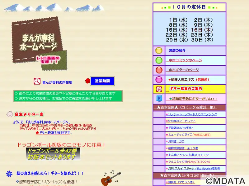 1984年に長野東御国道18号沿いに開業した、中古コミックと中古ギター専門店内で開講されているギター教室。フォークギター、エレキギター、弾き語りなどのレッスンを行っており、小学2年生からシニアの方まで、それぞれに合わせた個人レッスンを提供している。教室は月謝制ではなく、30分1,500円で、自分の都合の良い時間にレッスンが受けられるため、自分のペースで通うことができる。貸しギターも用意されている。