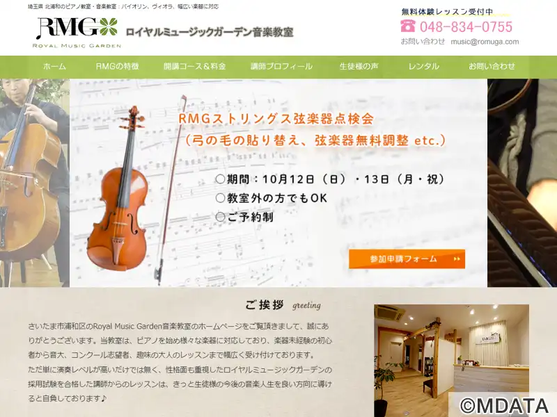 さいたま市浦和区に位置する音楽教室で、2016年の開設以来、ピアノをはじめ、ヴァイオリン、チェロ、ヴィオラ、フルート、トランペットなど、さまざまな楽器のレッスンを提供している。初心者から音楽大学生、コンクール志望者、音楽を趣味とする大人まで、あらゆるレベルを対象としている。講師は音楽大学出身の演奏家で、高い専門知識と経験を持ちながら、指導を行っている。教室はレンタルスタジオとしても貸出している。