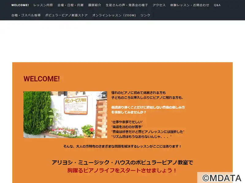 大津市のアットホームなポピュラーピアノ教室。大人を主な対象とし、初心者から経験者まで幅広く対応。クラシックだけでなく、J-POPや洋楽、ジャズ、ゴスペルなど多様なジャンルを学ぶことができる。楽譜通りの演奏にとどまらず、コードネームを使ったアレンジや即興演奏など、自分らしい表現力を育む実践的な指導が特徴。市販の楽譜に頼らず、自作コード譜によるサポートも充実しており、自由に音楽を楽しめる環境が整う。