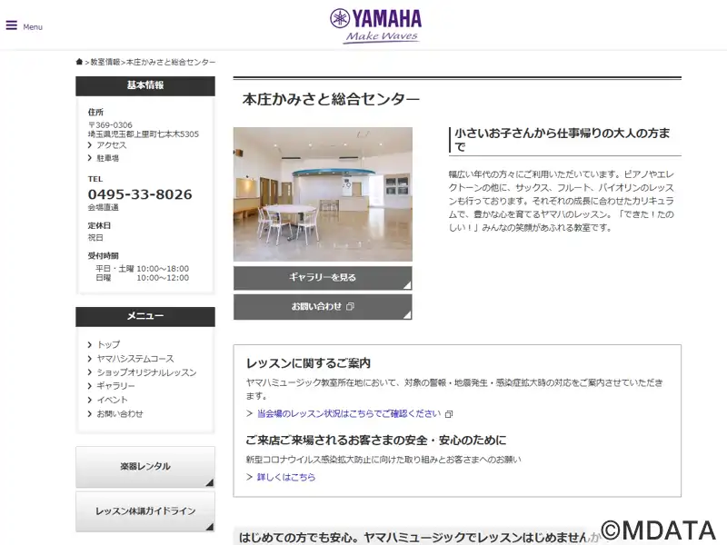 | 名称 | 本庄かみさと総合センター ヤマハミュージック |