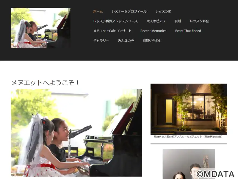 群馬県高崎市にある音楽教室で、幼児から大人まで幅広い年齢層を対象に、クラシック、ポピュラー、ジャズなど多様なジャンルのレッスンを提供。個人レッスンとグループレッスンを選択できる。コースには、就学前の子供向け「メヌエットP」、本科コース「メヌエットM」、受験や資格取得を目指す「メヌエットE」、大人のための「メヌエットG」があり、レベルに合わせて柔軟にカスタマイズされる。教室にはグランドピアノ3台あり。