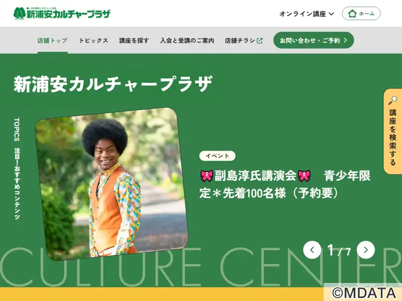 浦安市の新浦安駅前プラザマーレ3Fにある、株式会社カルチャーが運営するカルチャーセンター。「一流の講師とすばらしい仲間」をモットーに子どもからシニアまで楽しめる多彩なコースを開講。音楽講座はピアノ・電子オルガン、ギター、ウクレレ、フルート、リコーダー・サックス・クラリネット、ドラム、オカリナ、二胡、琴、三味線・三線、コーラス、ポピュラー・ジャズ、ボイストレーニング、カラオケ、和楽器コース等を開講。