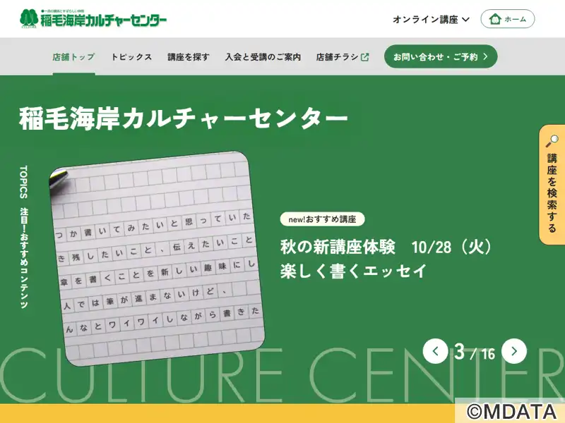 千葉市美浜区にあるイオンマリンピア専門館2Fにある、株式会社カルチャーが運営するカルチャーセンター。「一流の講師とすばらしい仲間」をモットーに子どもからシニアまで楽しめる多彩なコースを開講。音楽講座はピアノ・電子オルガン、ギター、ウクレレ、リコーダー・サックス・クラリネット、ドラム、オカリナ、三味線・三線、コーラス・愛唱歌、ポピュラー・ジャズ、ボイストレーニング、民謡を開講。