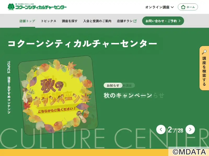 さいたま市大宮区にあるコクーンシティ・パークサイドビル2階にあるカルチャーセンター。子どもからシニアまで楽しめる多彩なコースを開講。音楽講座はピアノ・電子オルガン、ギター、ウクレレ、フルート、ハーモニカ、リコーダー・サックス・クラリネット、ドラム、オカリナ、大正琴・胡弓、二胡、琴、三味線・三線、シャンソン・カンツォーネ、コーラス・愛唱歌、ポピュラー・ジャズ、ボイストレーニング、カラオケを開講。(旧名称、ヨークカルチャーセンター大宮店)