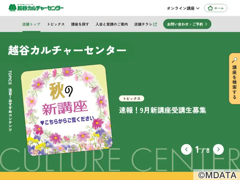 越谷市にあるアルコ越谷ショッピングスクエア地下1Fにある、株式会社カルチャーが運営するカルチャーセンター。「一流の講師とすばらしい仲間」をモットーに子どもからシニアまで楽しめる多彩なコースを開講。音楽講座はピアノ・電子オルガン、ギター、ウクレレ、フルート、オカリナ、二胡、三味線・三線、シャンソン・カンツォーネ、コーラス・愛唱歌、ボイストレーニング、カラオケ、和楽器・篠笛・太鼓を開講。