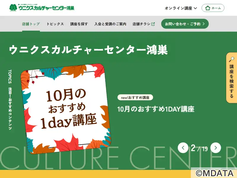 鴻巣市にあるショッピングセンターウニクス鴻巣2階にある、株式会社カルチャーが運営するカルチャーセンター。一流の講師とすばらしい仲間と一緒に音楽や歌のレッスンを楽しめる。音楽講座はピアノ・電子オルガン、ヴァイオリン、ギター、ウクレレ、マンドリン・ハープ、フルート、ハーモニカ、リコーダー・サックス・クラリネット、ドラム、大正琴・胡弓、二胡、三味線・三線、コーラス、ボイストレーニング、カラオケ等を開講。