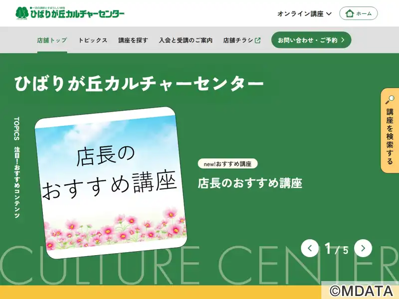 西東京市のひばりが丘駅前のパルコ5Fにある、子どもからシニアまで楽しく学べるカルチャーセンター。一流の講師とすばらしい仲間と一緒に音楽や歌のレッスンを楽しめる。音楽講座はピアノ・電子オルガン、ヴァイオリン、ギター、ウクレレ、マンドリン・ハープ、ドラム、大正琴・胡弓、二胡、三味線・三線、シャンソン・カンツォーネ、コーラス、ポピュラー・ジャズ、ボイストレーニング、カラオケ、和楽器・篠笛・太鼓を開講。