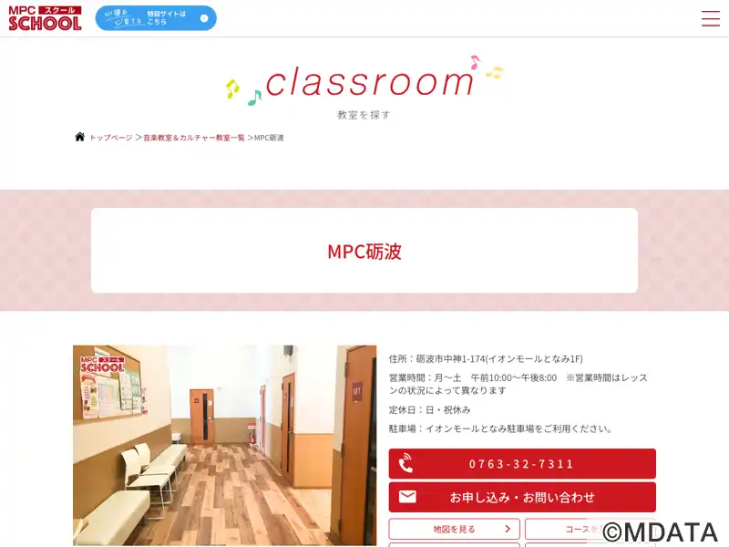 イオンモールとなみ1Fに2015年7月オープン。砺波駅前商店街の砺波会場から「MPC砺波」として音楽ライフの新たなパートナーに。ヤマハ音楽教室をはじめ、エレキ・アコギ・ウクレレ、トランペット、サックス、クラリネット、沖縄三線、三味線(藤本流)、ピアノ・エレクトーンは1曲マスターコースや幼稚園教諭・保育士を目指す方のレッスン、60歳から始めるコースなど多彩。初めてでも安心、無料体験レッスン受付中。