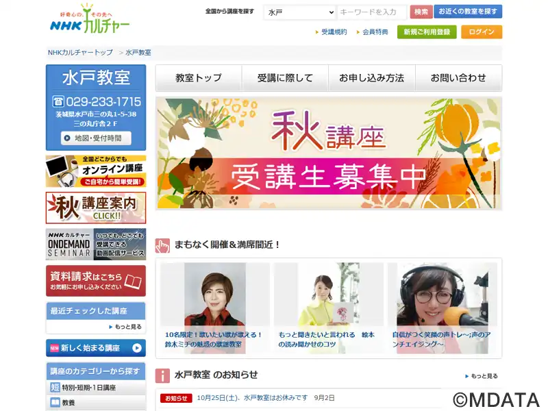 水戸市の三の丸庁舎2階にある、1979年に創業した株式会社NHK文化センターのカルチャー教室。「好奇心の、その先へ」を合言葉に、全国で多彩な講座を提供している。NHKの番組に関連する講座など、NHKグループだからこそできるサービスも提供する。音楽講座としては、ピアノ、カラオケ、ギター、ウクレレ、歌謡曲、シャンソン、ジャズ、演歌、謡曲、大正琴、三味線、尺八、篠笛、二胡、和楽器などのコースを開講している。