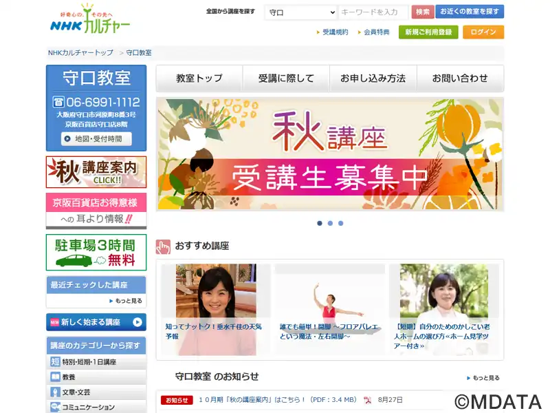 守口市の京阪百貨店守口店8階にある、NHK文化センターのカルチャー教室。「好奇心の、その先へ」を合言葉に、全国で多彩な講座を提供している。NHKの番組に関連する講座など、NHKグループだからこそできるサービスも提供する。音楽講座としては、ピアノ、ヴォイストレーニング、ウクレレ、童謡唱歌、民謡、ジャズボーカル、オカリナ、フルート、大正琴、リコーダー、スチールパン、謡曲、朗読などのコースを開講している。
