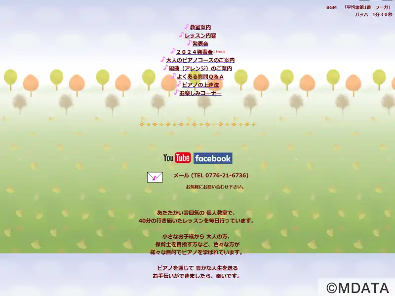 福井市三郎丸町に2006年開講した音楽教室。アットホームな雰囲気の中で子どもからシニアまで幅広い年代が学ぶ。ピアノや電子オルガン、リトミックを中心に、個々のペースや個性を尊重した個人レッスンを行っており、初心者から経験者、保育士・教員を目指す方まで対応。目的や生活スタイルに合わせてコースを選べる柔軟な体制も整う。音楽を通して豊かな心を育むことを重視し、一人ひとりに寄り添った丁寧な指導を心がける。