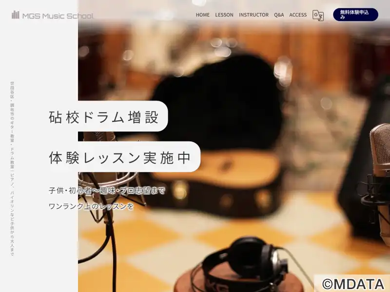 東京都世田谷区砧に2019年に開校したMGSレッスンセンター。6つのレッスン室を備え、グランドピアノ、真空管アンプやDAW環境も充実。ピアノ、バイオリン、ギター、ベース、ドラム、DTM、声楽など、クラシックからポピュラーまで幅広いジャンルのレッスンを提供。経験豊富な講師陣が、初心者からプロ志望まで指導する。聴音やソルフェージュ、保育士試験、音大受験対策にも対応しており、フレックス制の選択も可能。