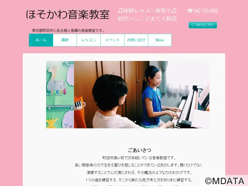 東京都町田市にあるアットホームな個人指導の音楽教室。子どもからシニアまで幅広い世代を対象に、リトミック、ピアノ、電子オルガンの各コースを用意。幼児には音楽遊びを取り入れたリトミックで、自然に音感やリズム感を養うことができ、ピアノやオルガンでは年齢や目的、レベルに合わせてきめ細やかな指導を行っている。また、楽しみながら基礎力を身につけられるよう、一人ひとりの個性や希望に寄り添う、温かなレッスンが特徴。