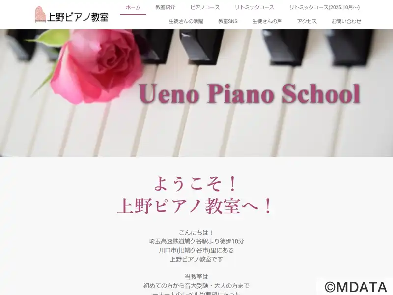 埼玉県川口市の埼玉高速鉄道鳩ケ谷駅より徒歩10分にあるピアノ教室。初心者から音大受験を目指す方、大人の趣味まで幅広く対応。一人ひとりの目標やペースに合わせた丁寧な指導を行っている。教室にはDIAPASONのグランドピアノが完備され、2台のピアノを使ったアンサンブルを通じて、音楽の楽しさや表現力を育む環境が提供されている。また、リトミックやソルフェージュ、発表会やコンクールへの参加を通じて自信を育む。