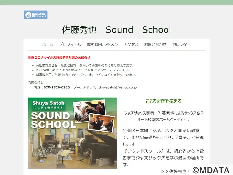 1981年に台東区日本堤に開講したジャズサックス奏者佐藤秀也によるサックス&フルート教室。Berklee音楽大学の理論を用いたマンツーマンレッスンによる指導で、生徒一人ひとりの個性を引き出す演奏を目指す。レッスン内容は、初心者から上級者を対象に、楽器の基礎からアドリブ奏法まで幅広く、要望に応じてカスタマイズ可能。教室には、ライブを開催することもある音響設備を、最高の音でジャズを楽しむことができる。