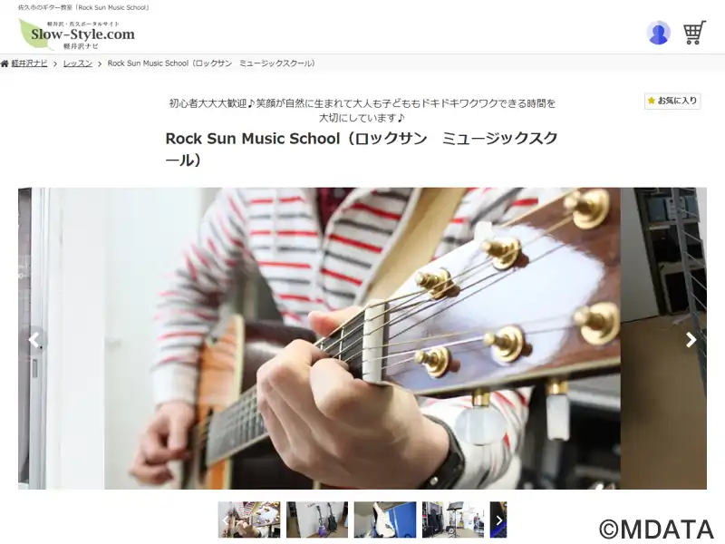 長野県佐久市にあるロック・ポップスを中心としたギター教室。アコースティックギター、エレキギター、ベース、子どもの音育ギター、ヴォーカル、ブルースハープなどのコースを開講している。子どもからシニアまで、幅広い年代を対象に、楽器の構え方、呼吸法、楽譜の読み方などの基本から学び、音楽を通じた人間形成やコミュニケーションを大切に、何より「楽しい」を重視したレッスンを提供する。
