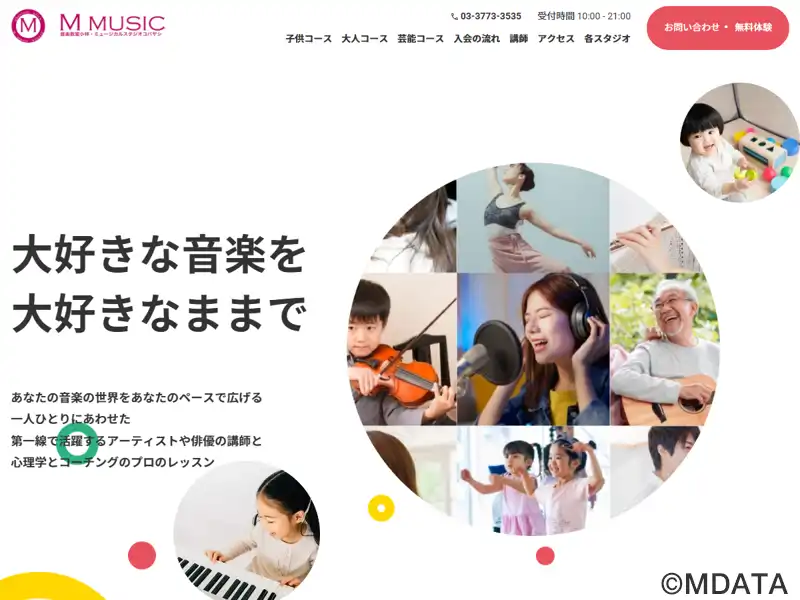 東京・大田区山王にある総合音楽スクール。ミュージカルや演技、ピアノ、ヴァイオリン、フルート、声楽、リトミック、絶対音感など多彩なカリキュラムに対応する。講師陣には劇団四季出身者や現役アーティスト、俳優が名を連ね、教育心理やコーチングを取り入れた個別指導が特徴。趣味からプロ志向まで一人ひとりに寄り添う指導を重視し、表現力の向上も支援。音楽制作や舞台企画、出張演奏、スタジオレンタルなども手がけている。