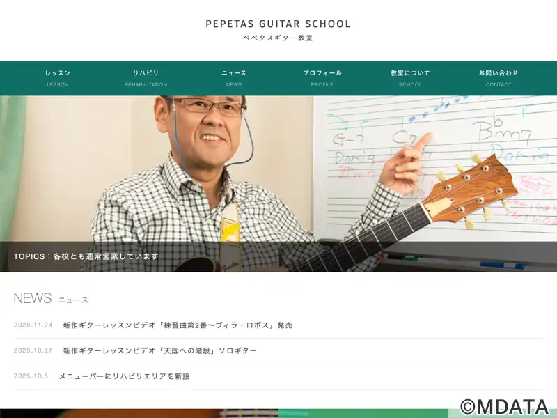 新宿区高田馬場エリアにあるギター専門教室。完全オーダーメイドの個人レッスンを行う。世界的ギタリストのペペ・ロメロから推薦を受けた講師、ペペ田代氏が指導を担当。初心者からプロ志望まで、ジャンルやレベルを問わず対応し、生徒一人ひとりの目標に合わせて音楽理論やDTM、アレンジも学べる。人間工学に基づいたフォーム指導で効率的な上達を目指す。定期的な発表会は、クラシックからロックまで多彩な演奏で楽しめる。