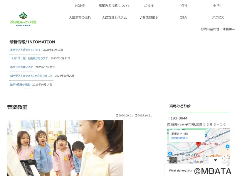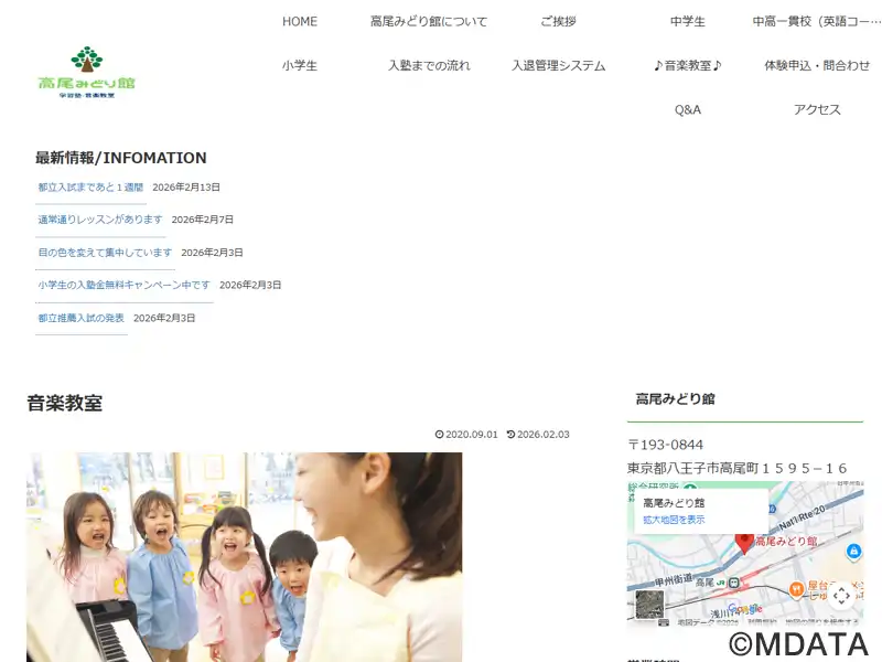 東京都八王子市の高尾駅から徒歩2分にあるピアノ・エレクトーン教室。40年以上の歴史を持つ。個人レッスンを基本に、幼児から中高年まで幅広い世代を対象とし、保育士志望者や現役保育士も多い。ピアノはグランドピアノを用い、エレクトーンやボーカルの指導も行い、希望に応じて好きな曲を教材にできる。兄弟での受講にも対応し、発声や表現を学ぶボーカル指導も充実。レッスンは柔軟に振替可能で、通いやすい環境が整っている。