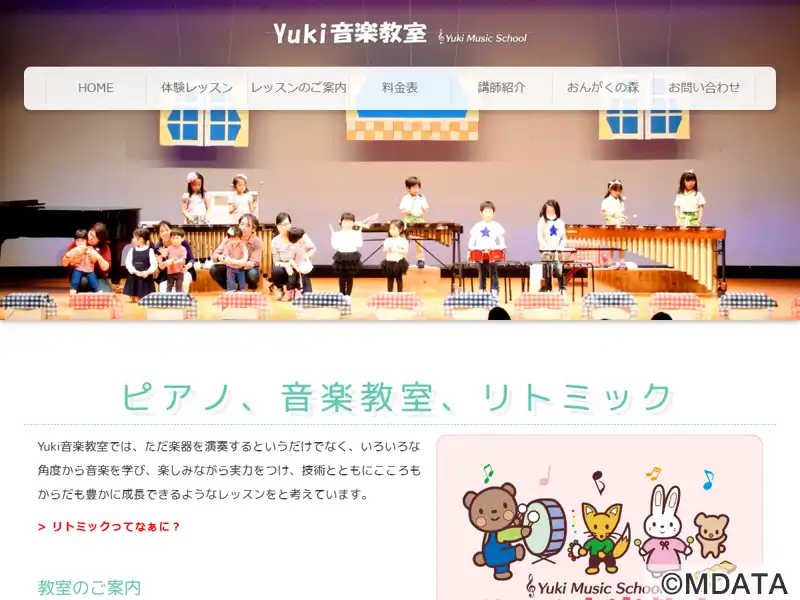 横浜市青葉区新子安と国立市にレッスンルームのある音楽教室。0歳から大人までを対象に、ピアノ、マリンバ、リトミックコースを開講している。0歳児からのリトミッククラスでは、音感・リズム感・集中力を育みながら、音楽の楽しさを体全体で感じられるレッスンを行う。3歳からは、個々に合わせた教材によるピアノやマリンバの演奏レッスンを行う。演奏会や発表会での合奏の機会もあり、実力を高めながら音楽を楽しむことを目指す。