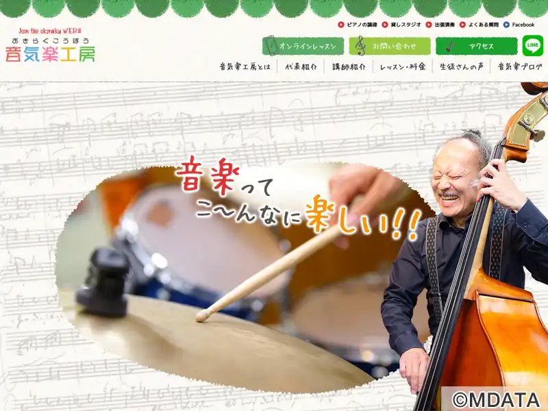 横浜市江田に位置する「音楽を気楽に楽しむ」がコンセプトの音楽教室。ヴォーカル、ギター、弦楽器、管楽器、ドラムなど多様なコースを提供し、ジャズからゴスペル、クラシックまで幅広いジャンルに対応する。初心者から上級者まで、経験豊富な講師陣が一人ひとりのニーズに合わせたマンツーマン指導を行う。「音気楽セッション」というジャムセッションをレッスンスタジオで開催し、どのジャンルやレベルの方でも気軽に参加できる。