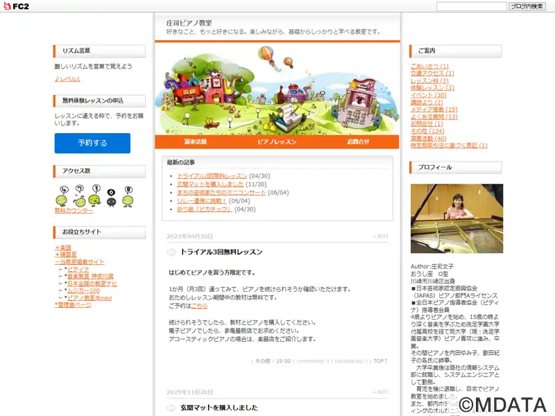 川崎市伊勢町にあるピアノ教室。川崎市を中心にピアノ演奏活動を行う、庄司文子氏(洗足学園音楽大学卒)が主宰している。生徒の目的やレベルに応じたマンツーマンレッスンを行っており、ソルフェージュ(聴く、読む、書く、歌う)の指導にも力を入れている。教則本を使ったレッスン以外に、好きな曲でのレッスンや、学校の音楽授業のサポートも行う。初回はカウンセリングも兼ねた体験レッスンを実施。年に1回、発表会を開催。