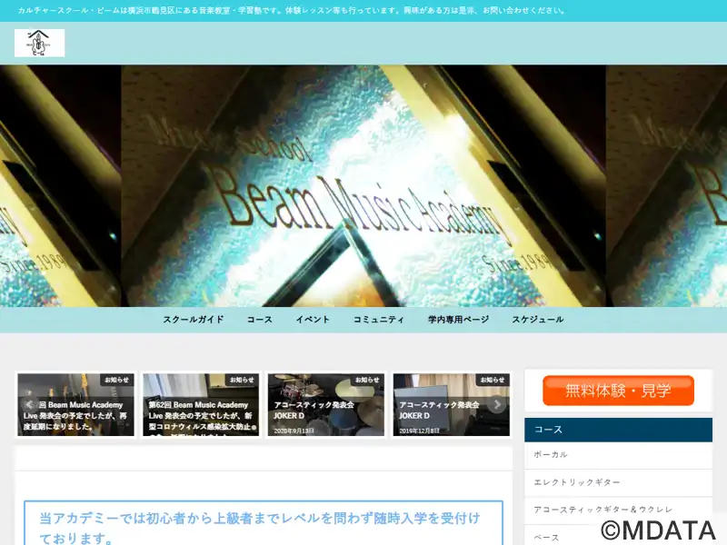 横浜市鶴見区にある多彩な音楽教育を提供するカルチャースクール。ボーカルやギター、ドラム、ピアノ、作曲理論などの専門コースを設け、初心者からプロ志向まで幅広い層に対応。レッスンはマンツーマンを基本に、グループやペア、出張形式など多様なスタイルから選択可能。バンドライブやアコースティック発表会も定期開催。学んだ成果を発揮する機会も用意されている。スタジオレンタルなど、バンド活動のサポートも行っている。