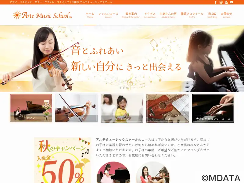 川崎市北谷町に1985年開校した音楽教室。0歳からシニアまで幅広く対応。ピアノ、エレクトーン、ヴァイオリン、ギター、ウクレレ、ソルフェージュなど、趣味で楽しみたい方から専門学校受験指導まで対応している。また、トミック研究センター認定教室として、幼児教育にリトミックを取り入れている。大人向けのフリーコースもあり、クラシックからポップス、ジャズ、ラテンまで多様なジャンルに対応。発表会など交流の場も提供。
