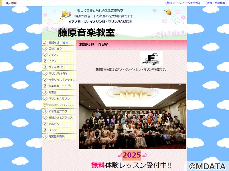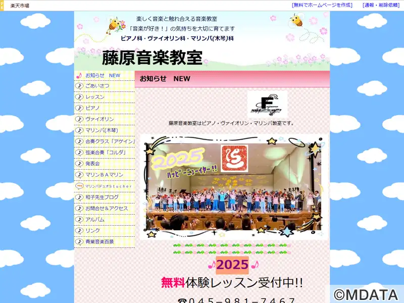 横浜市青葉台駅から徒歩5分の場所に位置する音楽教室。ピアノ、バイオリン、マリンバの科目を開講。初心者から大人まで幅広い年齢層の方々を対象に、楽しく学べる環境を提供している。ピアノ科では、基礎から応用までを広範に指導し、バイエルやブルグミュラーなどの基本教材を使用して、クラシックからポップス、ジャズまで、多様なジャンルの演奏を学べる。個人レッスンや合奏クラスもあり、ソロや合奏形式の発表会を開催している。