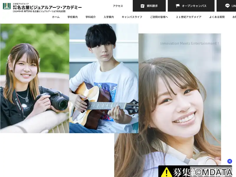 名古屋市にある、エンターテインメント業界への就職・デビューを目指す専門学校。音楽、声優、俳優、ダンス、映像、写真など、多岐にわたる分野で教育を提供する。1964年設立、多くの卒業生がプロとしてエンタメ業界で活躍している。校内には、プロ仕様のアフレコ・演技・ダンススタジオ、コンサートホール、音響照明実習教室、アンサンブルスタジオ、など、現場と同レベルの設備で、実践的なスキルを身につけることができる。