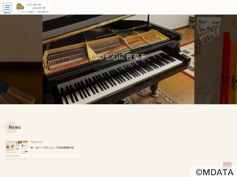大阪府豊中市の服部緑地公園近くにあるピアノ教室。3歳から60代まで幅広い年齢層が在籍し、幼児向けには、わらべうたや楽器遊びを通じて「聴く力」を育て、小学生以上には読譜やソルフェージュを含む独自のカリキュラムで指導を行う。特に、シュタイナー教育に着想を得た音楽導入のグループレッスンや、大人向けには、リラックスした演奏を目指す「お豆奏法」を取り入れ、一人ひとりの個性を大切にした音楽教育を提供している。