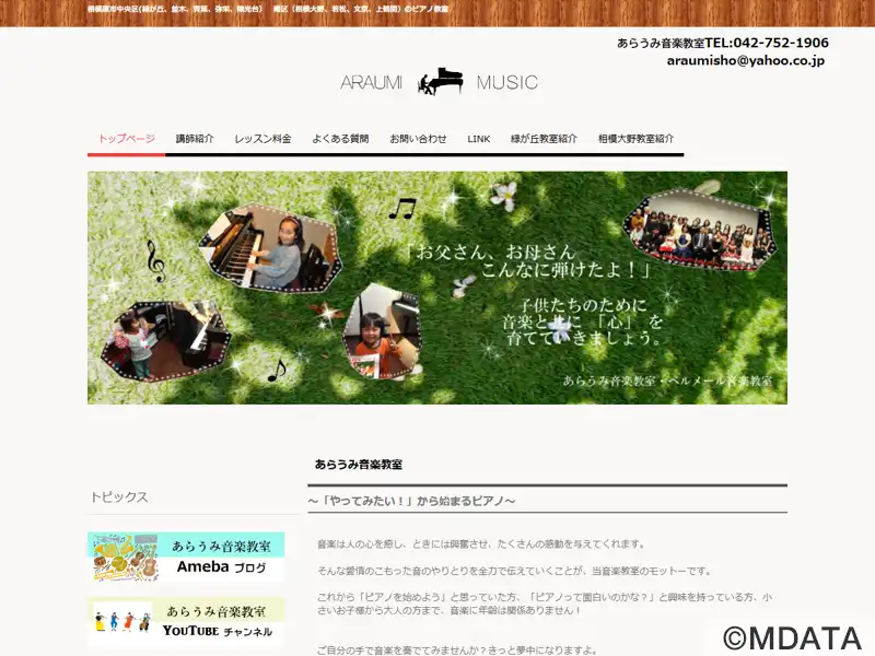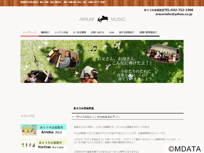 神奈川県相模原市にある音楽教室で、南区相模大野と中央区緑が丘の2つのレッスンルームを展開している。主にピアノを中心に、ソルフェージュや楽典、リトミックなどの指導を通じて音楽の楽しさを伝えている。ピアノは創造性や社会性の育成に効果的な手段とされており、教室のモットーは「音楽による愛情の交流を全力で伝える」こと。幼児から大人、初心者から音楽大学の受験生まで、さまざまなレベルの方々を対象に指導している。