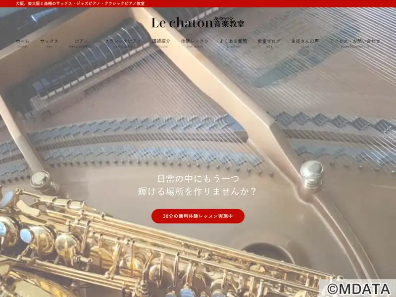 東大阪市にあるアットホームな音楽教室で、サックス、ピアノ、キーボードのレッスンを開講。子どもから大人まで、初心者から経験者まで幅広く対応し、クラシック、ジャズ、ポップス、フュージョンなど多彩なジャンルをカバーしている。サックスは譜面の読み方やアドリブ演奏、個別アレンジなどを指導。ピアノはクラシックに加え、ポップスやジャズ、シンセサイザーにも対応。一人ひとりの目的やレベルに応じた丁寧に指導している。