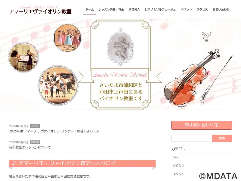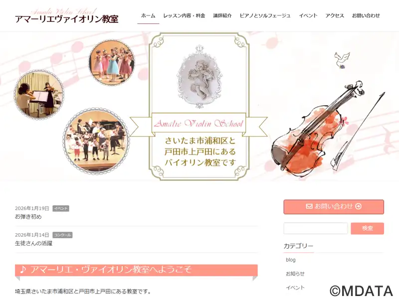さいたま市と戸田市にあるヴァイオリン教室。親子で学ぶバイオリン、子供のバイオリン、大人のバイオリンの3つのクラスを開講。「ヴァイオリンは楽しい」という気持を大切にしたカリキュラムで、高度な演奏技術も楽しく学べ、楽譜を読む力、繰り返し練習し、弾けない箇所を弾けるようにする力、独創性、表現力、感受性、協調性を身につける。発表会ではヴィヴァルディ、モーツアルト、バッハなど偉大な作曲家の名曲を仲間たちと一緒に演奏する。