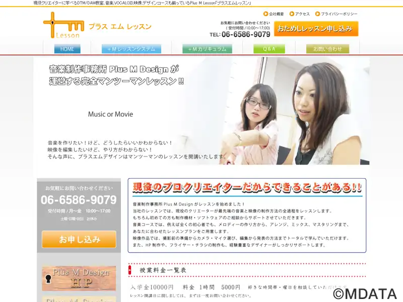 大阪市を拠点とする音楽制作事務所プラスエムデザインが運営する音楽教室。プロのクリエイターが講師を務め、DTMやDAWソフトの使い方、作曲、ミックス、マスタリング、ボーカロイドの活用など、音楽制作全般に対応している。教室にはレコーディングブースも設けられており、録音や録画を取り入れた実践的なレッスンが受けられる。生徒一人ひとりの目的やレベルに合わせて、柔軟にカリキュラムを設計した個人レッスンが特長。