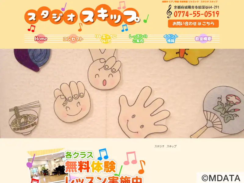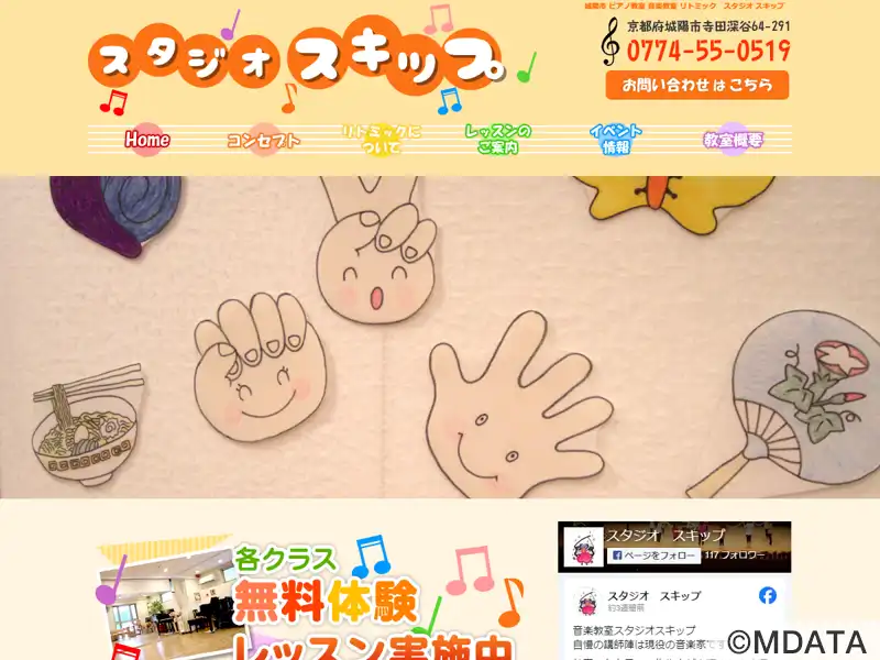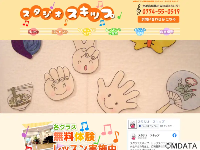 京都府城陽市にある音楽教室。リトミック、ボイストレーニング、コーラス、カホン、ピアノなどの専門クラスを開講。幼児から大人まで幅広い年齢層を対象とし、個別およびグループレッスンを提供している。音楽を通じて人と人とのつながりを大切にし、豊かな創造力を育むことを目指している。定期的にコンサートやワークショップを開催し、生徒がステージで演奏する機会も提供している。音楽を通じて心と体の成長をサポートしている。