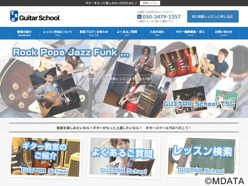 埼玉県新座市に本部をおく2006年5月創業のギター総合スクール。関東エリアにレッスン会場を設け、初心者から上級者まで、ロックやポップス、ジャズなどのエレキ・アコースティックギターレッスンを行っている。講師は「優しく丁寧に」をモットーに、生徒のやりたいことや目標を確認した上で、適切なレッスンを提供する。また、音楽仲間を作り、一緒に楽しむ環境を作り、ギターを演奏を通じて人生を豊かにすることを目標にしている。
