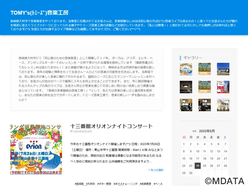 長崎県大村市にある音楽工房。ボーカル、カラオケ、ギター、ベース、ウクレレ、ピアノ、ドラムのマンツーマンレッスンを行う。初心者向けのギター・ベースのコースでは、好きな曲を弾き語りできるようになることを目標に、基礎的なコードスケールやソロ、アドリブなどの奏法、楽曲のアレンジ、アコーステックなどを学ぶ。レッスンの経過を「音カルテ」として保存し、演奏のクセ、レッスン成果を客観的に振り返ることで技術の向上を目指す。