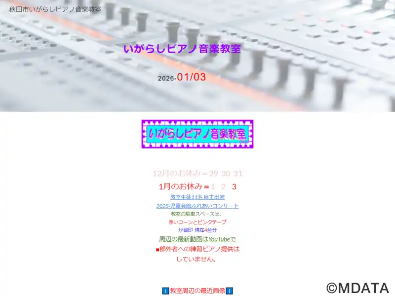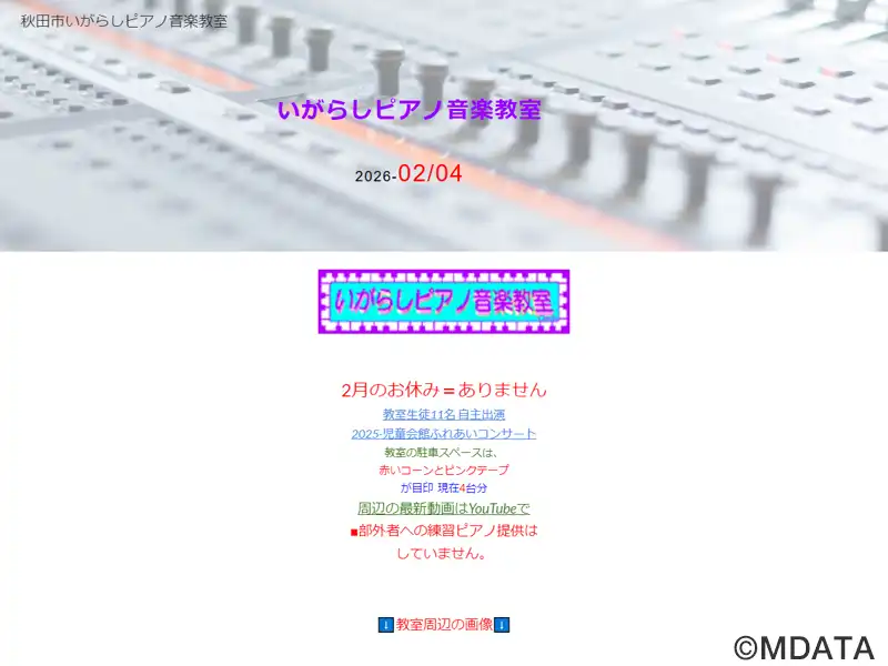 秋田市にある個人レッスン専門のピアノ教室。幼児から大人までを対象に、進度や目的に応じたマンツーマン指導を行っている。入門期には両手演奏から始める教材を用い、基礎力の定着を重視。ソルフェージュや楽典、写譜、コードネーム演奏なども選択でき、保育士試験対策にも対応する。発表会の参加は任意とし、暗譜や選曲も生徒の負担にならない形を尊重。2室のレッスン環境と録音・映像活用を取り入れ、日々の学習を支えている。