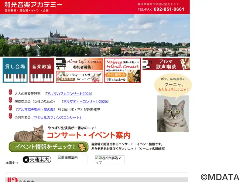 福岡市早良区にある音楽教室・貸しスペースで、音楽への探求心を育む場所としてサービスを提供。ピアノ、声楽、ヴァイオリンなどのレッスンを開講し、初心者から上級者、子どもからシニアまで、それぞれのレベルに合わせた指導を、経験豊かな講師が提供する。練習や発表会に最適なレンタルスタジオも完備。2階には、優れた音響性能を誇るマジョルカホールがあり、発表会や公開レッスン、アンサンブル練習など多目的に使用できる。