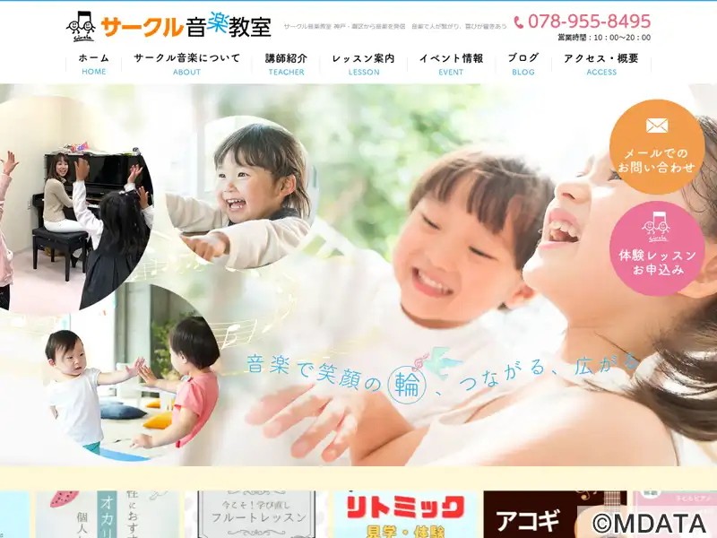 神戸灘区に2009年にオープンした総合音楽教室。リトミック、ピアノ、声楽、ボイストレーニング、カホン、フルート、サックス、ギター、オカリナ・ウクレレなど、子供から大人まで楽しめる多彩なコースを開講。スクール代表の冨士正太朗氏(日本カホン協会代表)のカホンレッスンをはじめ、親切で丁寧な指導をモットーに、実績豊富な講師陣により、確かな技術と豊かな音楽性を伝えるレッスンを行う。発表会やイベントも開催している。