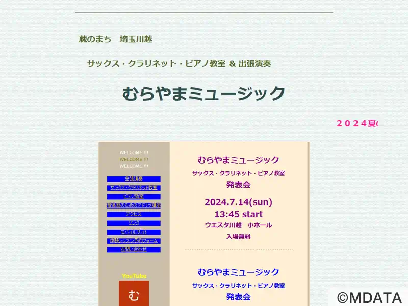 埼玉県川越市にある音楽教室で、サックス、クラリネット、ピアノのレッスンを提供する。レギュラーコースからキッズコース、アドリブ講座まで、多彩なコースを用意。経験や年齢に関係なく、初心者から受講可能。定期的に開催される発表会では、プロのジャズミュージシャンと共に演奏する機会があり、目標達成の喜びを共有できる。遮音性能の高いミュージックキャビンでのレッスンでは、夜遅くまでのレッスンにも対応している。